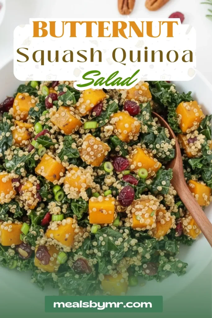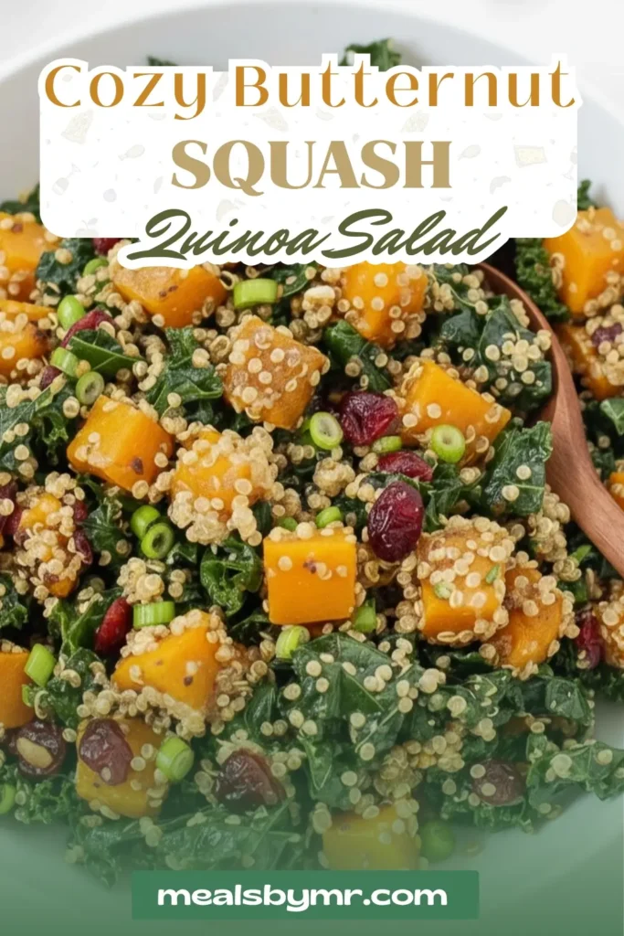 A wholesome vegan quinoa salad with roasted butternut squash, kale, cranberries, and a maple-balsamic dressingโperfect for a fall harvest table.