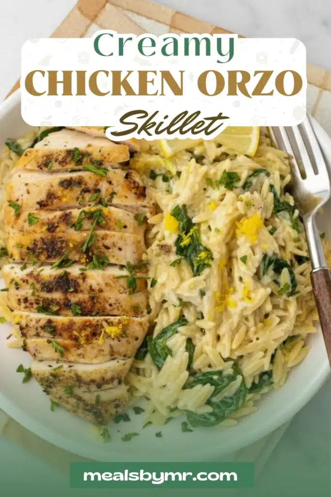 This creamy chicken orzo skillet is beautiful served family style right from the pan. I love setting it in the center of the table with some crusty bread and a simple green salad. For special occasions, try serving it in individual bowls with a sprinkle of extra Parmesan and fresh herbs on top.