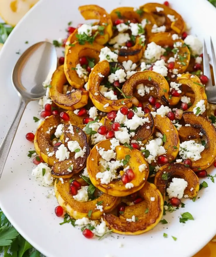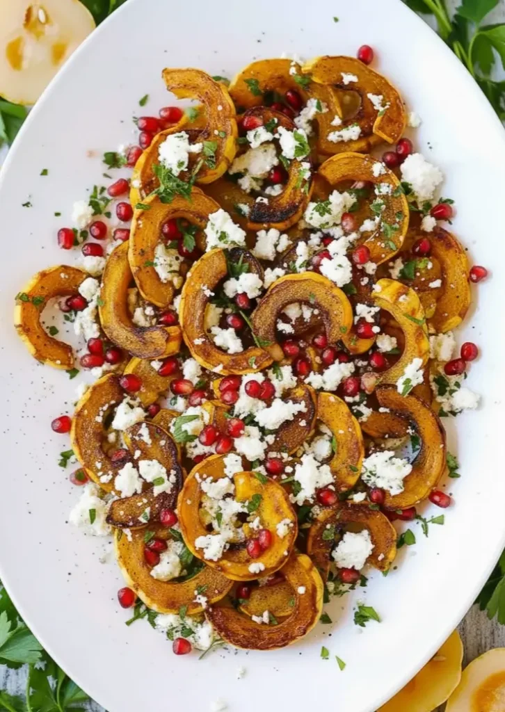 Thereโ€™s something special about dishes that look as beautiful as they taste, and Roasted Delicata Squash with Goat Cheese and Pomegranate is one of them. Sweet caramelized squash, creamy goat cheese, and bright pops of pomegranate come together in perfect harmony. Itโ€™s elegant enough for guests yet simple enough for a cozy dinner at home a true celebration of the season on your plate.